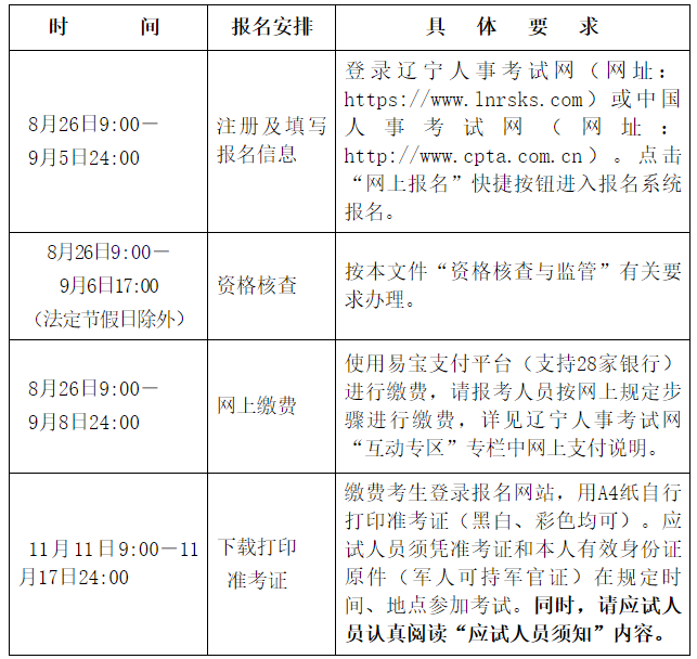 拟选择在辽宁省(不含大连市)参加考试的报考人员,完成注册环节后可在规定时限内进行考试报名。拟选择在大连市参加考试的报考人员,在报考省份中可直接选择“大连市”,具体事宜请咨询大连市人事考试部门。