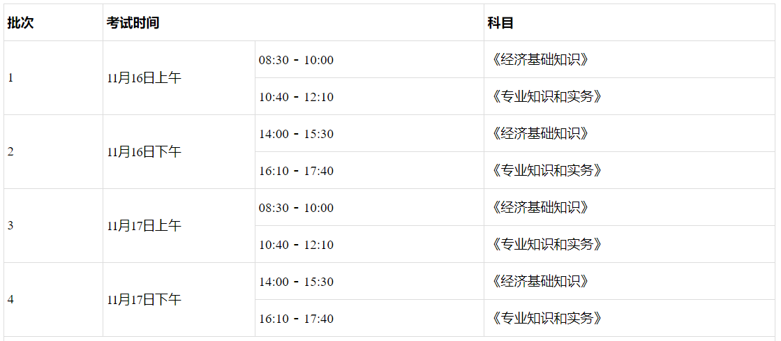 初级经济考试分2天,上、下午共4个批次实施。各级别及专业类别的具体批次划分和考试时间以准考证上的信息为准。