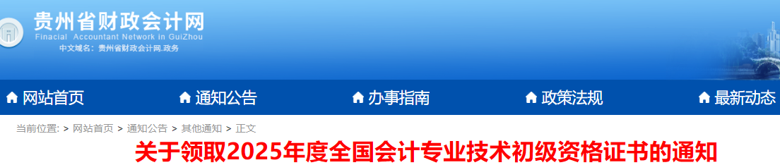 9月30日,贵州省财政会计网发布了《关于领取2025年度全国会计专业技术初级资格证书的通知》,其中明确2025年初级会计证书领取时间为10月9日至10月23日,请携带本人有效身份证原件领取。
