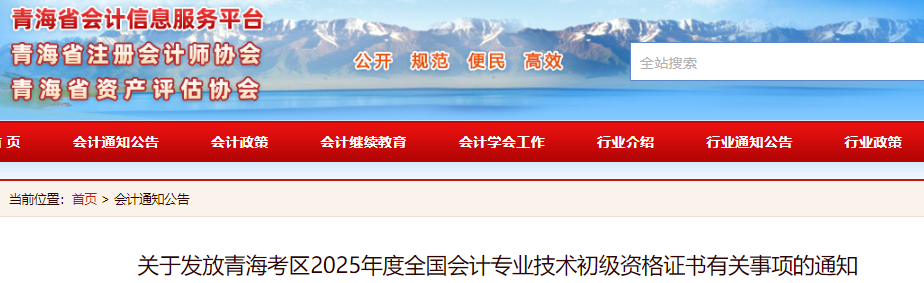 2025年度会计专业技术初级资格考试合格人员证书已下发到青海省,为确保2025年度初级资格证书发放工作平稳有序,现就有关事项通知如下: