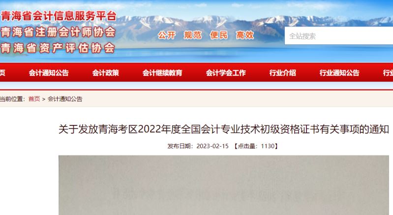 各市(州)、格尔木市、青海油田考办务必于2月20日前到省财政厅会计处领取本地区初级资格考试成绩合格人员证书,抓紧做好证书发放工作。考生领取证书通知将在“青海省财政厅门户网站”和“青海省会计信息服务平台”网站进行公布。