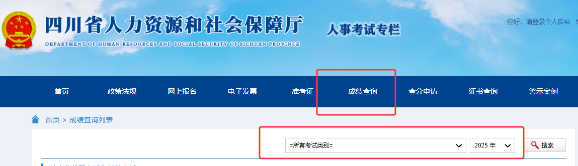 可在四川省人力资源和社会保障厅官网“人事考试”专栏查询成绩。