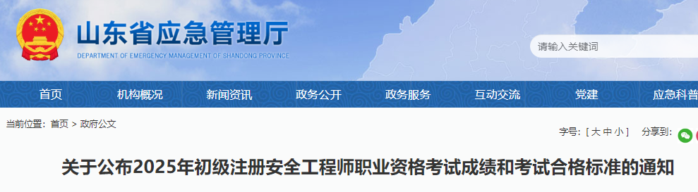 11月25日,山东省应急管理厅发布了《关于公布2025年初级注册安全工程师职业资格考试成绩和考试合格标准的通知》可知2025年初级注册安全工程师成绩已公布,2个科目合格标准均为60分。