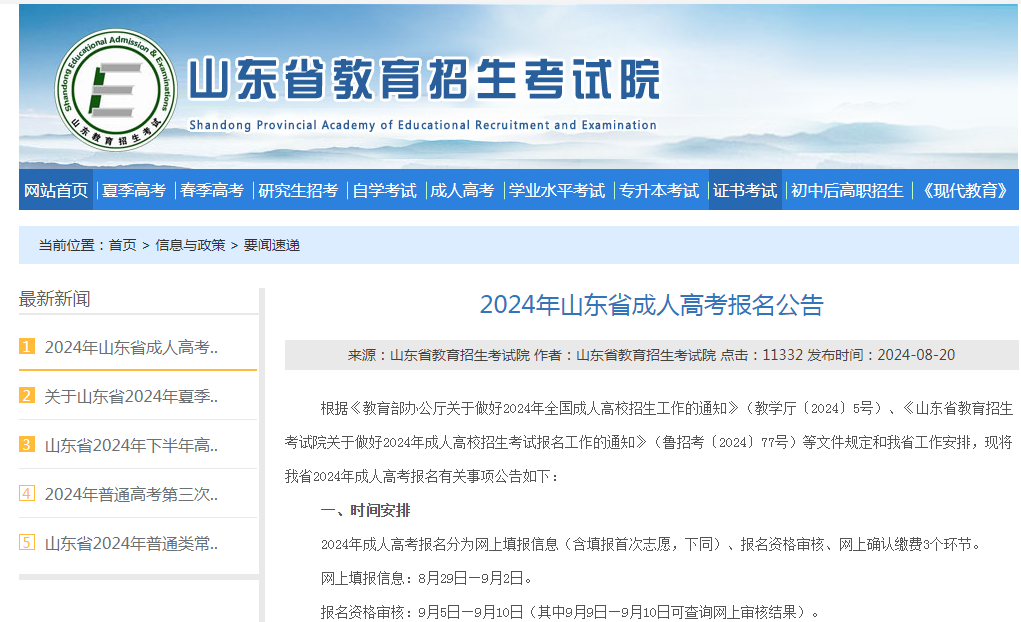 2024年山东省成人高考报名工作即将启动,官方宣布报名时间为8月29日至9月2日,广大考生需在此期间内完成网上信息填报。本文详细梳理了报名流程、注意事项及关键时间节点,助力考生顺利备考与报名。