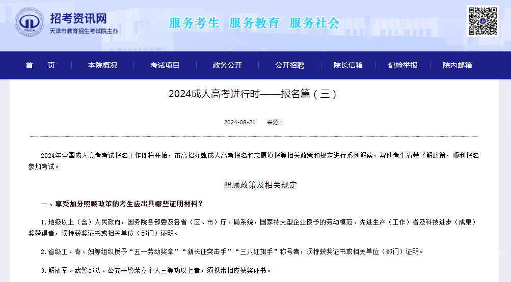 2024年天津市成人高考报考指南,2024年全国成人高考考试报名工作即将开始,市高招办就成人高考报名和志愿填报等相关政策和规定进行系列解读,帮助考生清楚了解政策,顺利报名参加考试。