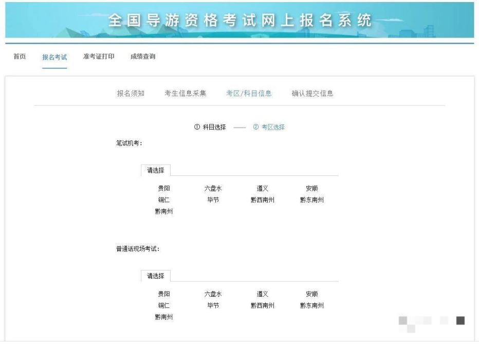 第八步:选完报考科目后点击“下一步”按钮,进入“考区选择”页面,考生根据自己的情况就近选择考区。