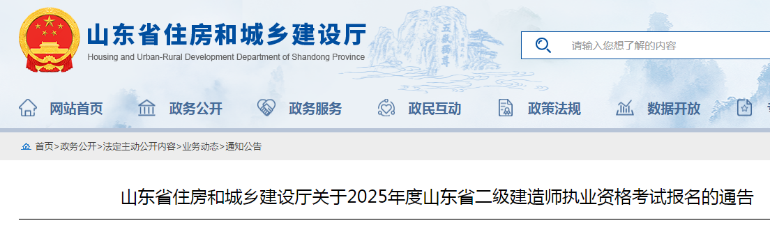 山东省住房和城乡建设厅近日发布了关于2025年度山东省二级建造师执业资格考试报名的通告。考试定于2025年5月10日至11日举行,采用全国统一试卷和评分标准。本文将详细介绍考试时间、科目、题型、报考条件及报名流程,帮助考生顺利报名。注意:各省二建考试具体的报名时间不同,2025年二级建造师考试其他地区具体哪天开始报名?建议大家填写文章顶部信息栏,通过“立即预约”免费预约短信提醒,届时我们将及时为大家发送短信,提醒您预约省份2025年二级建造师报名时间、缴费截止时间、资格审核时间、考试时间等信息。