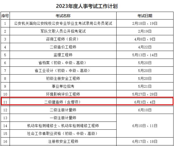 2023浙江二级建造师考试时间浙江人事考试网近日发布了2023年度人事考试工作计划,其中明确了2023年浙江二建考试时间为6月3日、4日,考生们需要合理规划时间进行备考。