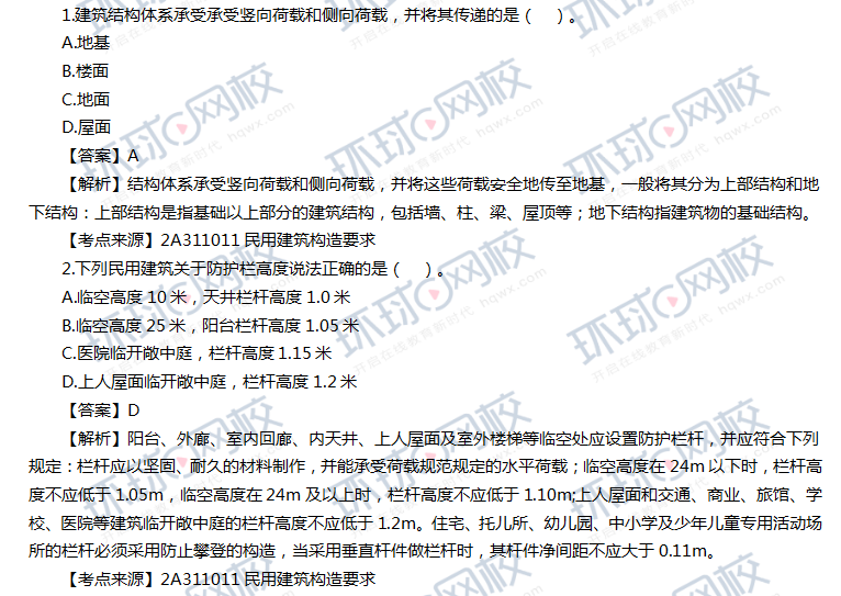 2023二级建造师《建筑工程管理与实务》真题答案及解析-(1天3科,6月3日)