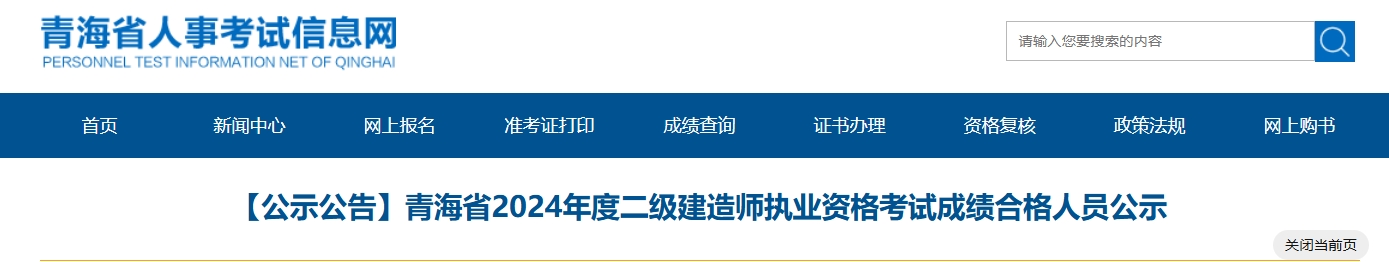 近日,青海省人事考试信息网发布《青海省2024年度二级建造师执业资格考试成绩合格人员公示》,2024年青海二级建造师成绩合格人员名单已公布,共2045人合格,公示时间为9月29日至10月28日。
