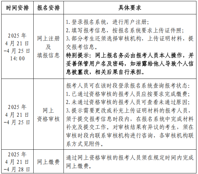 (2)网上缴费时间:2025年4月21日至4月28日。