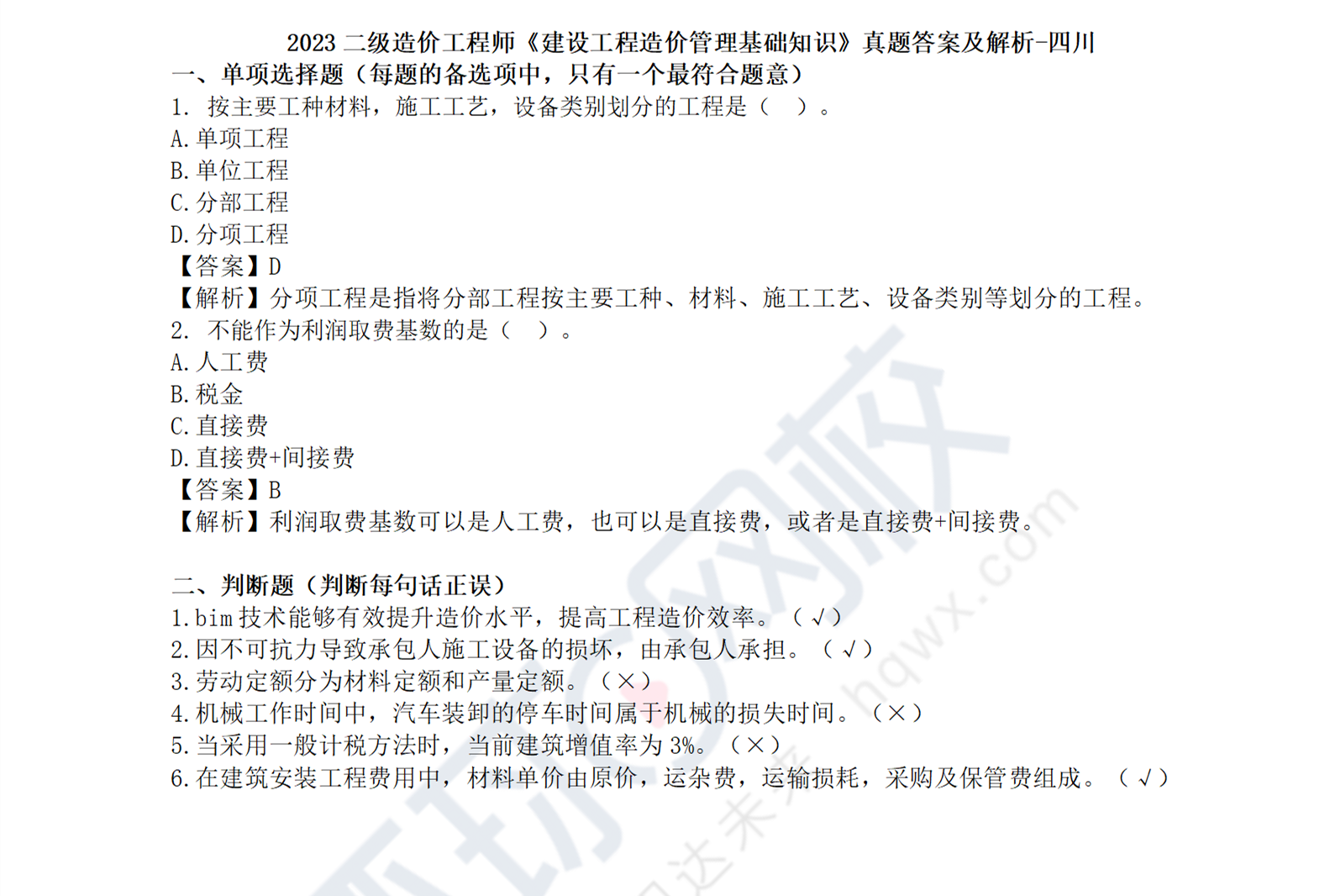 真题搜集工作还在继续,敬请关注更新!考生点击文章下方,可下载>>二级造价师真题及解析(电子版)