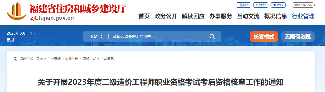 9月7日,福建省住房和城乡建设厅发布了“关于开展2023年度二级造价工程师职业资格考试考后资格核查工作的通知”,核查对象为2023年度二级造价工程师职业资格考试应考全部科目成绩(含滚动成绩)均合格考生。