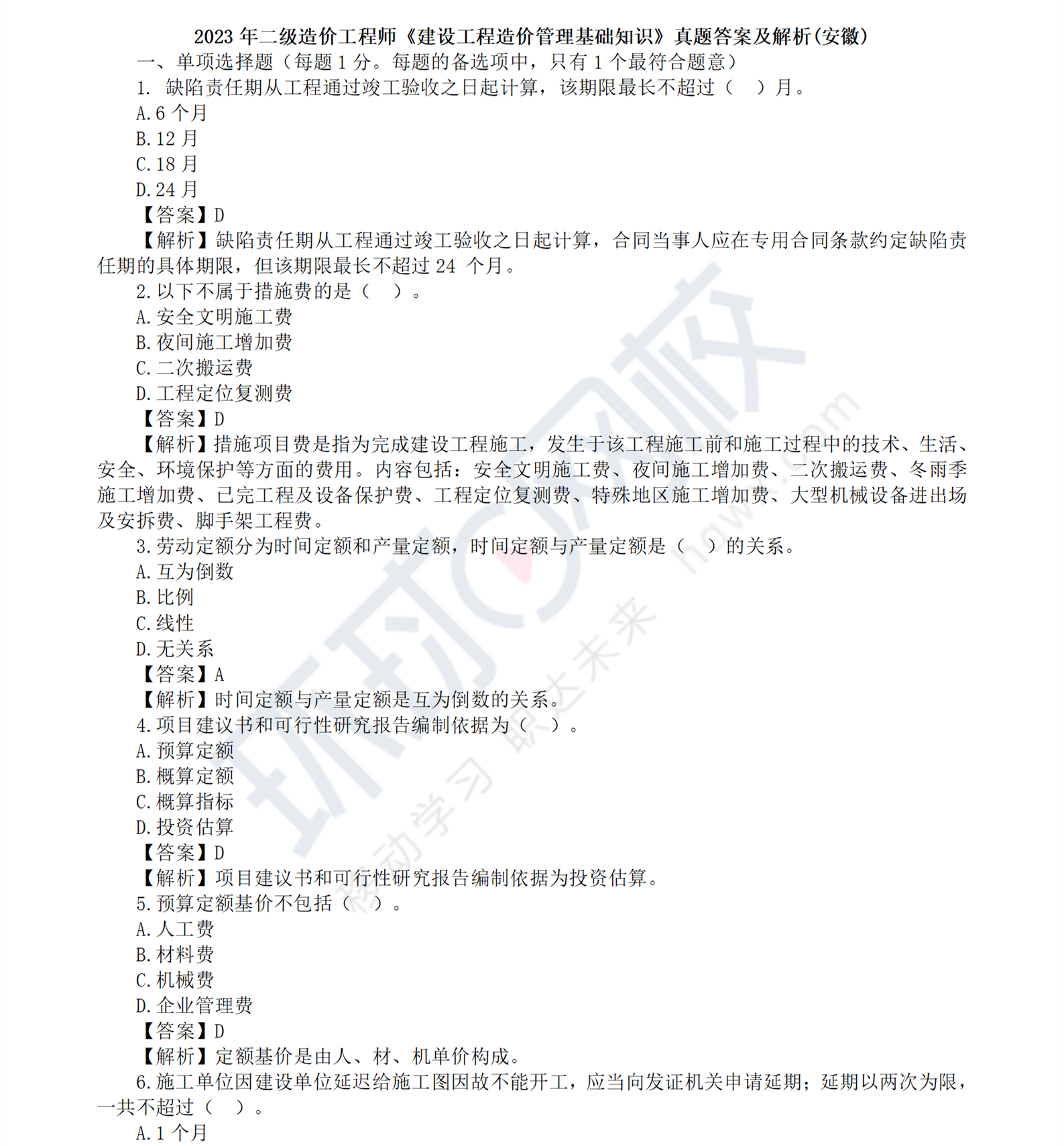 考生可以点击文末“真题下载”版块,免费下载>>2023年安徽二级造价师真题及解析(电子版)