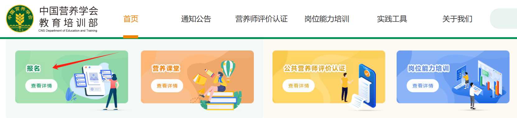 2025年起,公共营养师考试报名全面取消个人直报,考生需通过中国营养学会教育培训部官方网站(https://www.cnsedu.net/)完成报名。具体路径为: