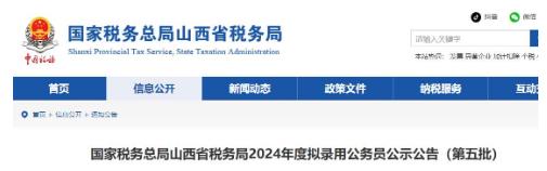 国家公务员录用公示重磅来袭!国家税务总局山西省税务局2024年度拟录用公务员公示公告(第五批)正式公布。依据中央机关及其直属机构2024年度考试录用公务员工作要求,经过层层严格选拔,最终确定拟录用人员。