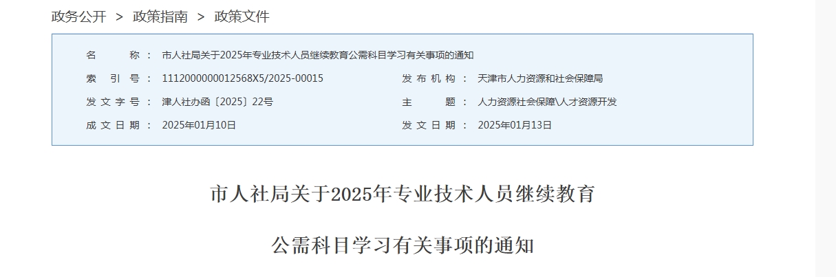 天津市2025年专业技术人员继续教育公需科目学习有关事项的通知