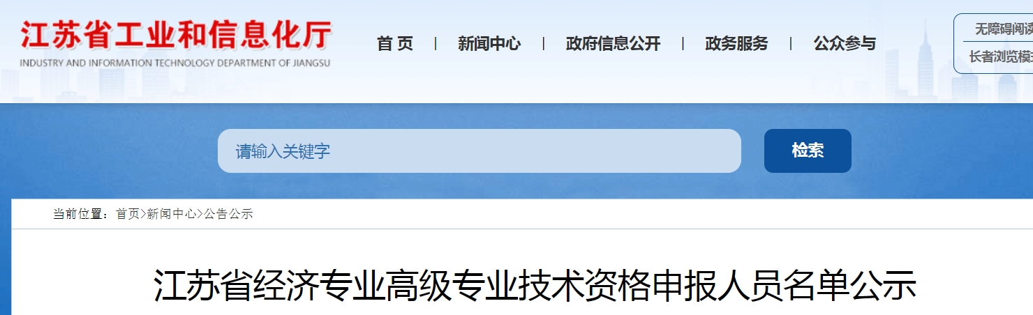 江苏省经济专业高级专业技术资格申报人员名单公示