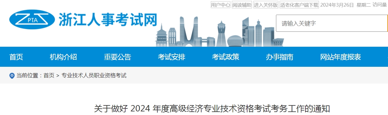 根据浙江人事考试网发布的《关于做好2024年度高级经济专业技术资格考试考务工作的通知》可知,浙江2024年高级经济师报名时间为4月10日至4月19日,报考详情如下。