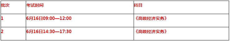 高级经济考试分上、下午2个批次实施。各专业类别具体批次划分和考试时间,视报名情况另行确定。