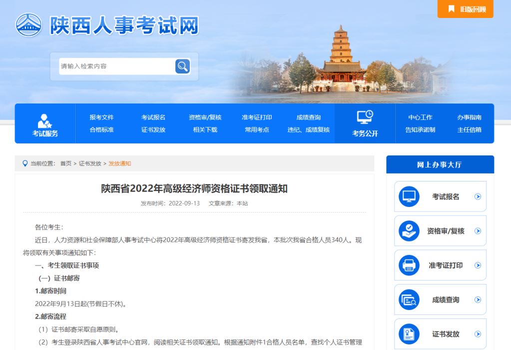 2022年陕西高级经济师资格证书领取方式:证书邮寄、窗口领取