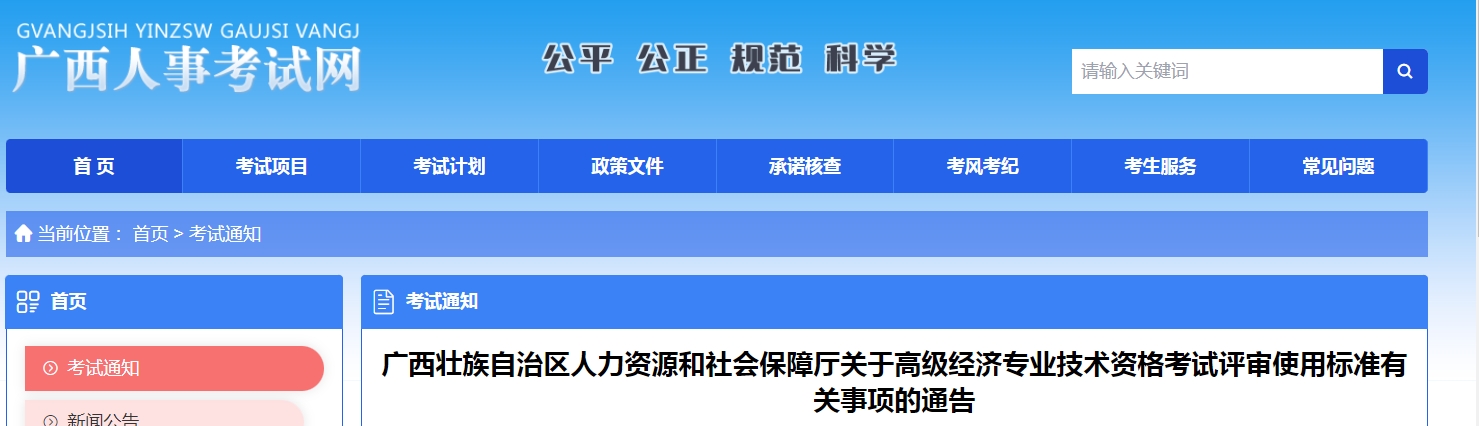 广西壮族自治区人力资源和社会保障厅关于高级经济专业技术资格考试评审使用标准有关事项的通告