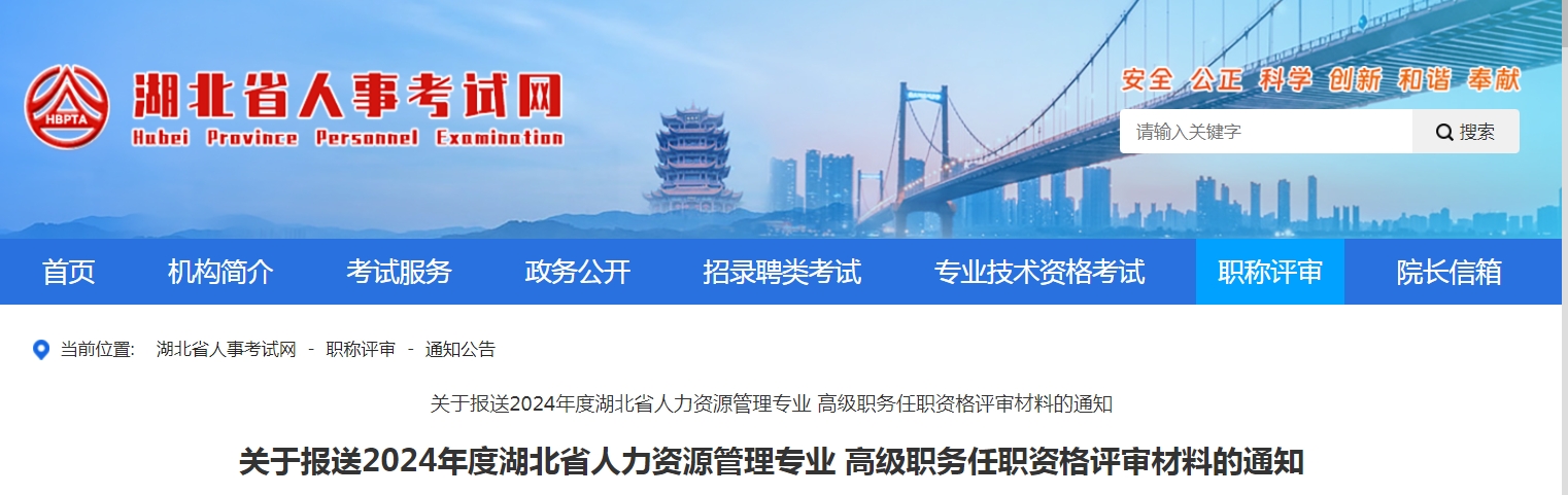 关于报送2024年度湖北省人力资源管理专业高级职务任职资格评审材料的通知