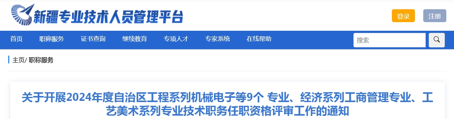 关于开展2024年度自治区工程系列机械电子等9个 专业、经济系列工商管理专业、工艺美术系列专业技术职务任职资格评审工作的通知