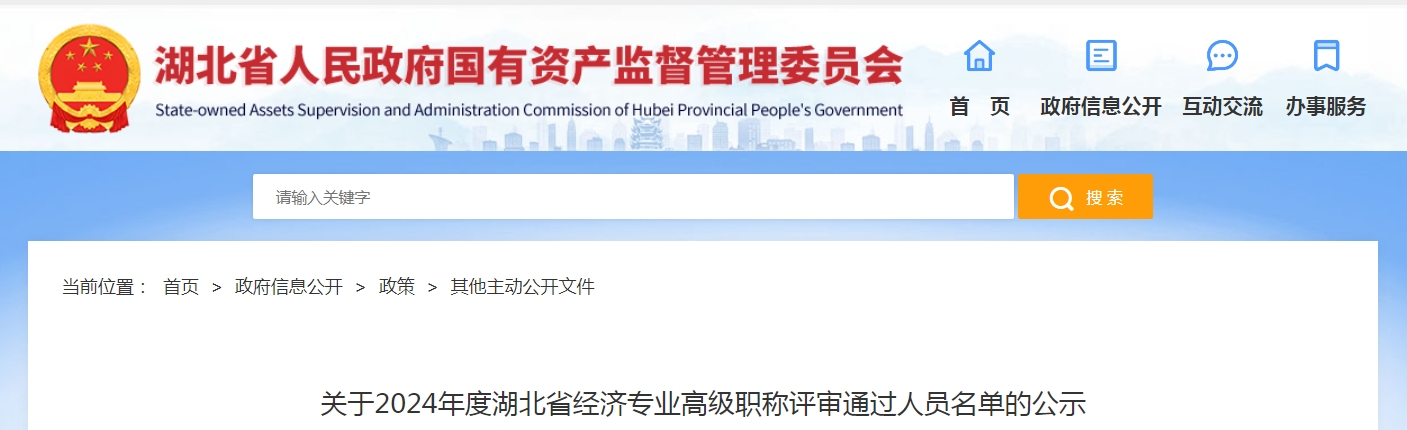 关于2024年度湖北省经济专业高级职称评审通过人员名单的公示