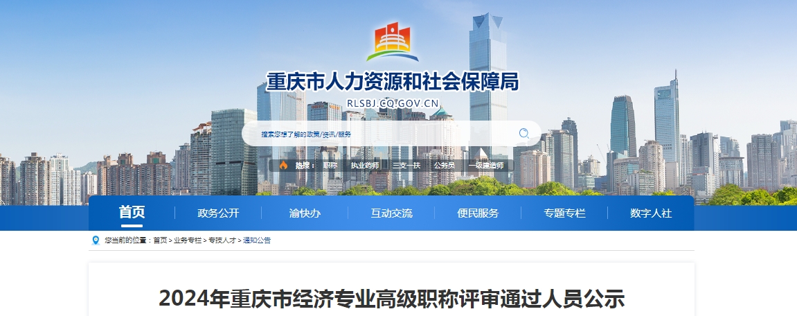 2024年重庆市经济专业高级职称评审通过人员公示名单(详见:https://rlsbj.cq.gov.cn/ywzl/zjrc/sy/tzgg_110153/202412/t20241218_13900308.html)