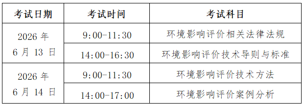 2026年度环境影响评价工程师职业资格考试大纲, 以生态环境部网站公布为准。