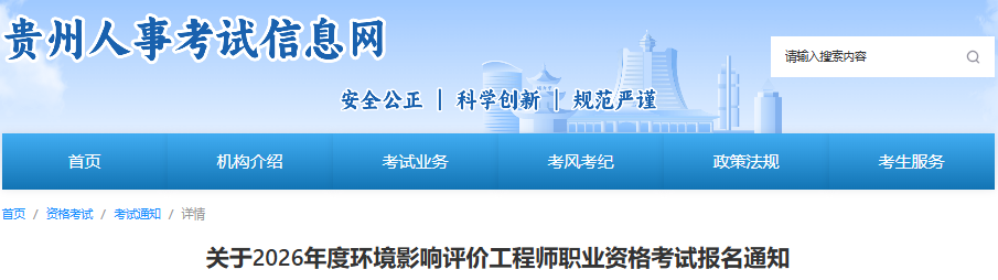 贵州人事考试信息网:2026年贵州环境影响评价师报名时间:4月9日至16日