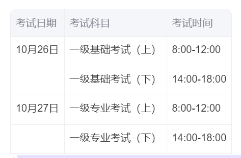根据全国注册工程师管理委员会官方通知,2025年注册结构工程师考试将于10月26日、27日举行,具体时间安排如下: