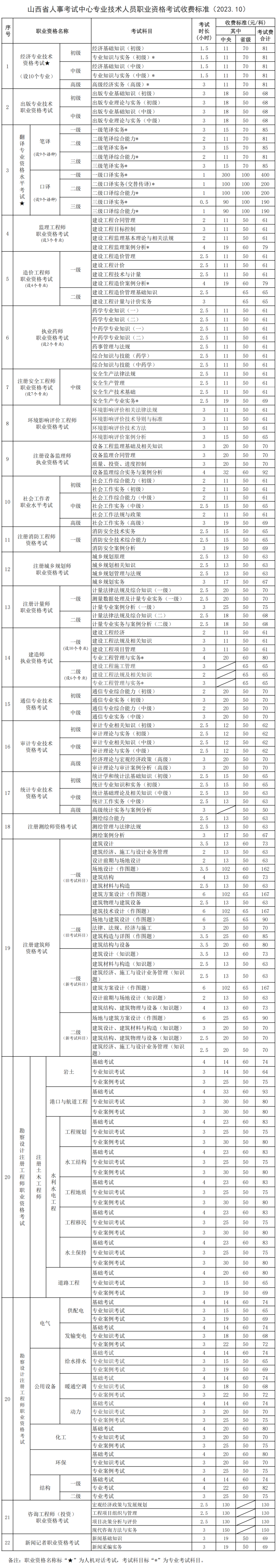 附件:山西省人事考试中心组织的有关专业技术人员职业资格考试收费标准公示表(2023. 10)