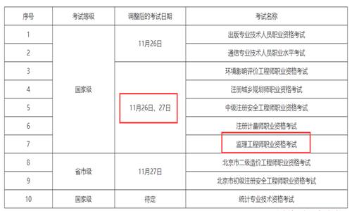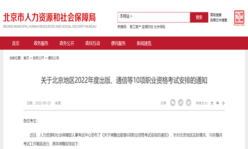 近日,人力资源和社会保障部人事考试中心发布了《关于调整出版等6项职业资格考试安排的通告》,针对北京地区实际情况,10月整月考试工作顺延进行,具体调整安排如下: