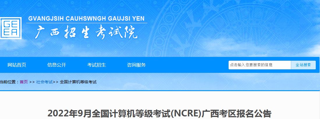 广西招生考试院《2022年9月全国计算机等级考试(NCRE)广西考区报名公告》