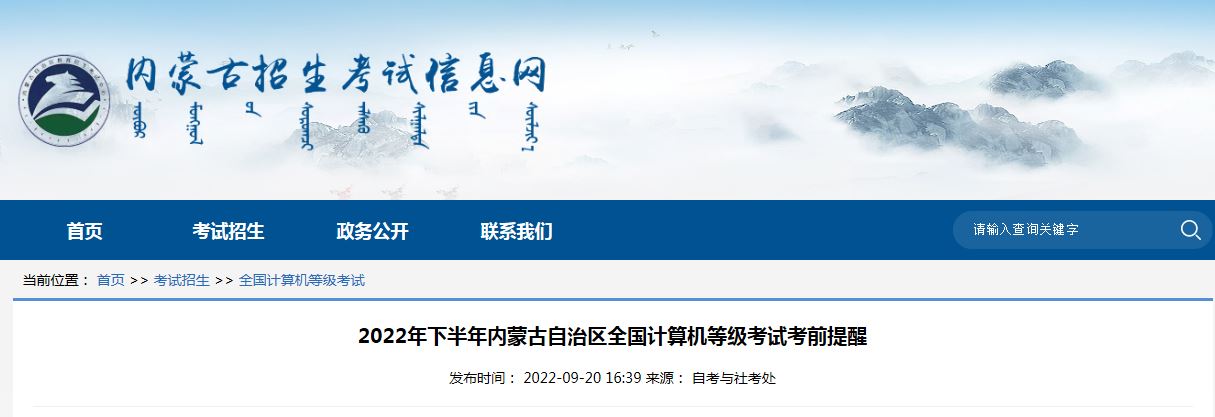 内蒙古自治区教育招生考试院发布《2022年下半年内蒙古自治区全国计算机等级考试考前提醒》