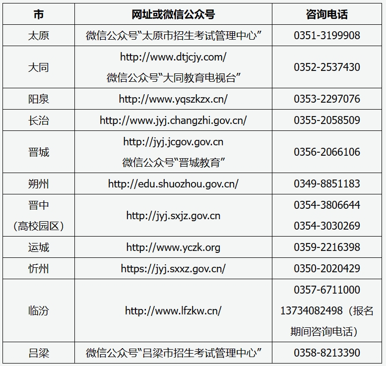 6.各市考试管理部门网址或微信公众号、咨询电话