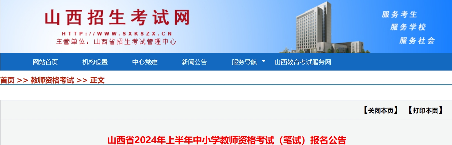 根据教育部和省教育厅有关规定,现将山西省2024年上半年中小学教师资格考试笔试报名有关事项公告如下: