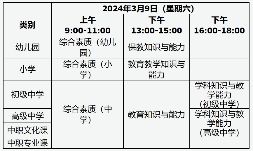 4.申请中职文化课教师资格的人员参加高级中学教师各科考试。申请中职专业课教师资格的人员参加高级中学教师的综合素质和教育知识与能力两科考试。学科知识与教学能力一科,纳入面试环节进行考查。