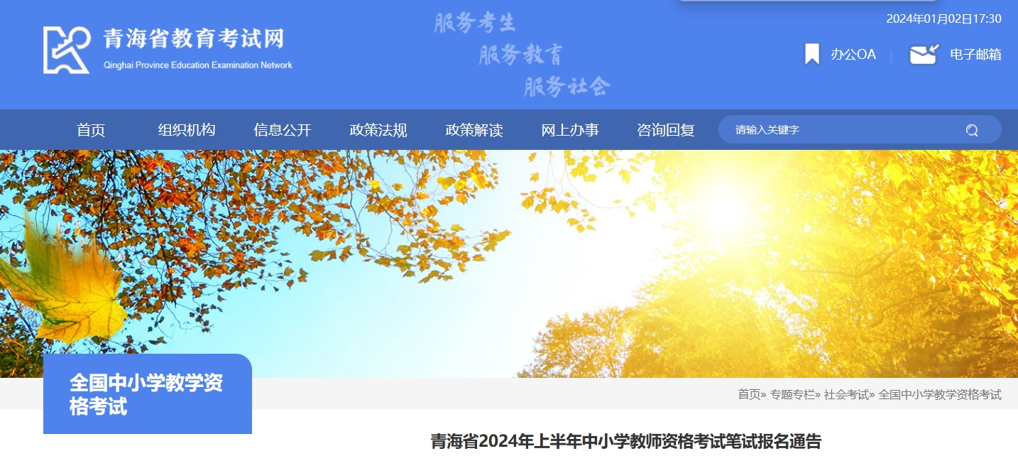 2024上半年青海省教师资格证考试报名时间:1月12日-1月15日