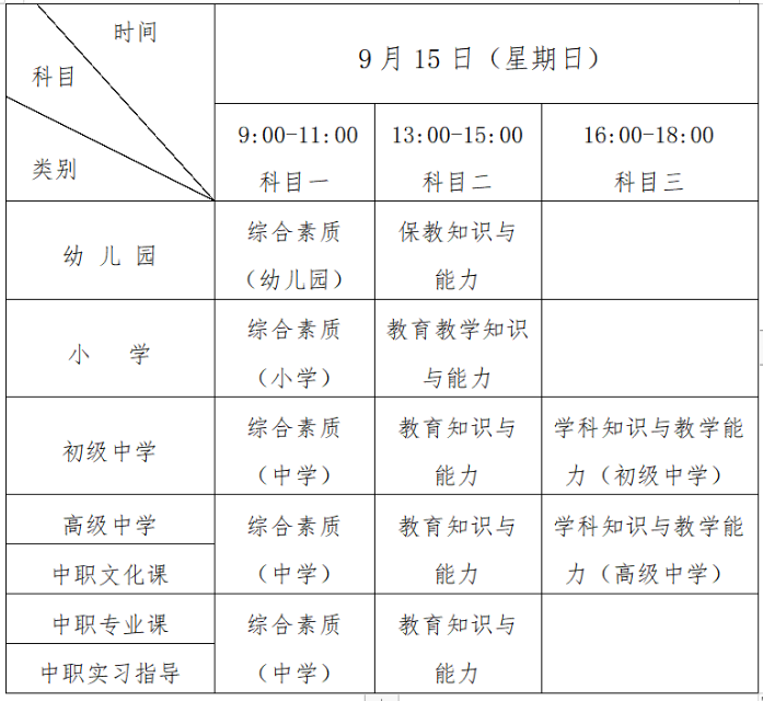 (三)申请中等职业学校专业课和中等职业学校实习指导教师资格的人员参加高级中学科目一、科目二两科考试,科目三学科结合面试进行考核。