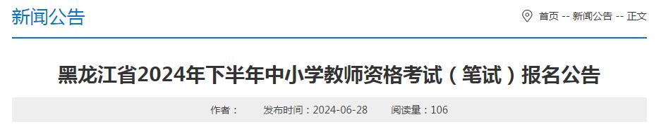 根据教育部教育考试院统一部署,2024年下半年中小学教师资格考试(笔试)将于9月15日举行,报名工作将于7月5日开始,现将黑龙江省中小学教师资格考试(笔试)报名有关事项公告如下: