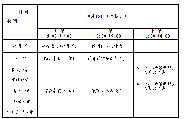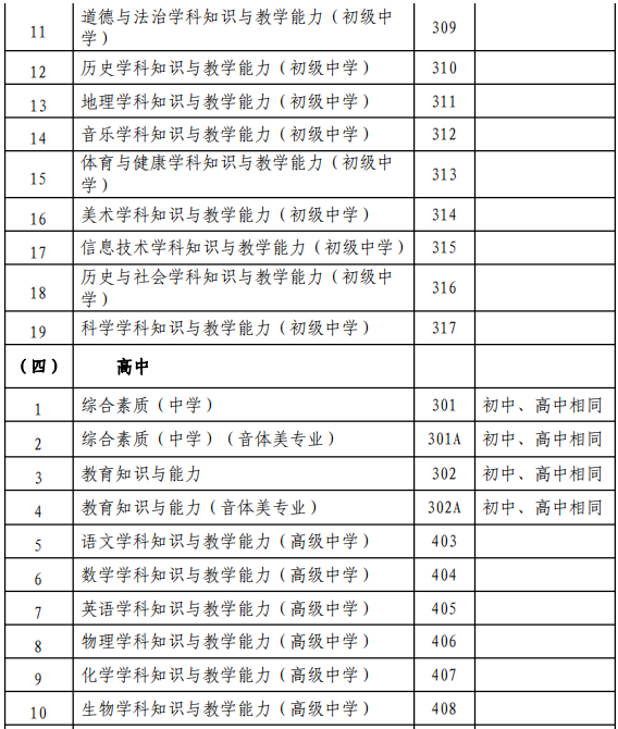 (二)初级中学、高级中学、中职文化课的“学科知识与教学能力”笔试具体科目见附件3。