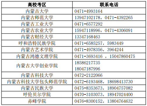 (二)高校考区联系电话(仅限本校在读考生咨询)