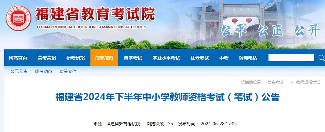 6月28日,福省教育考试院发布《福建省2024年下半年中小学教师资格考试(笔试)公告》,明确了2024年下半年福建省教师资格证报名将于7月5日10点至7月8日17点进行。