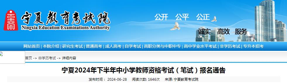 宁夏教育考试院6月28日发布《宁夏2024年下半年中小学教师资格考试(笔试)报名通告》,其中明确了宁夏教师资格证下半年报名时间为7月5日-8日,还安排了审核和缴费时间等,请考生知悉。