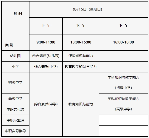 2024年下半年北京教师资格证考试科目及时间安排