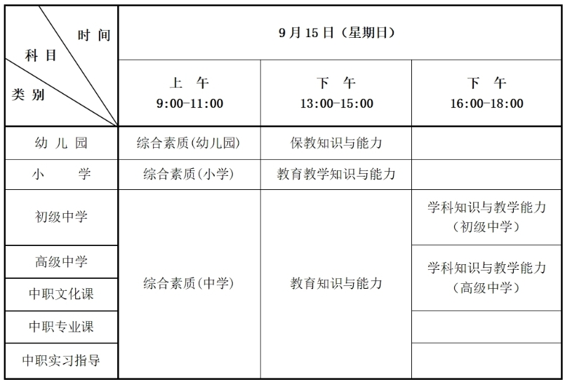 1.考试时间:9月15日