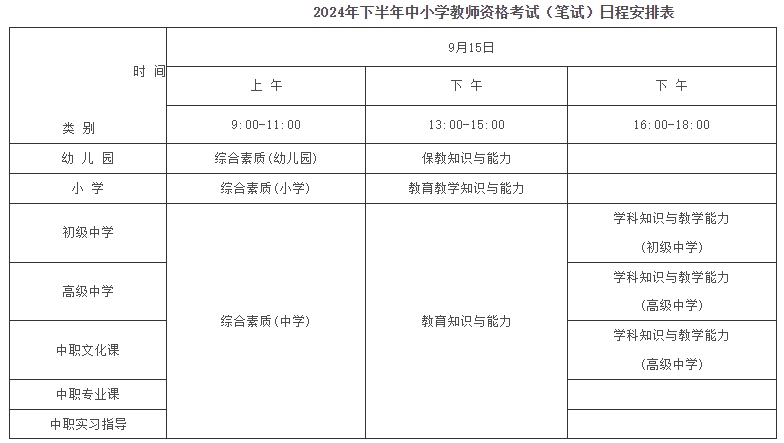 2024下半年安徽教师资格证笔试考试科目及日程安排